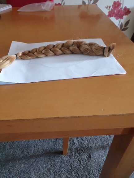 M’s 14 inch of hair which will be donated to make a wig